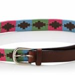 Cwell Equine Leather Hand Made Skinny Polo Belt – Embroidered/Stitching Detail BELT PINK/TURQUOISE/GREEN BROWN LEATHER