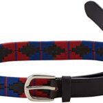 Cwell Equine Leather Hand Made Skinny Polo Belt – Embroidered/Stitching Detail BELT Red/Navy Black Leather